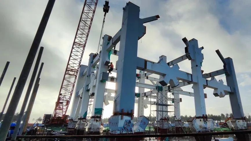 “一號發(fā)射工位預(yù)埋鋼柱腳的軸線定位精度要求為1mm,這樣的安裝精度要求遠(yuǎn)高于一般民用土建工程施工規(guī)范要求。”航天設(shè)計(jì)一號發(fā)射工位項(xiàng)目負(fù)責(zé)人汲生偉介紹。一號工位發(fā)射塔架是整個(gè)塔架的根基,其基礎(chǔ)施工要求一體化、一次性整體澆筑,土建安裝精度遠(yuǎn)小于規(guī)范要求的毫米級標(biāo)準(zhǔn)值。塔架建設(shè)還需要考慮防火、防腐、防銹的三防要求,在海邊高鹽霧環(huán)境下實(shí)現(xiàn)快速恢復(fù)、高質(zhì)量發(fā)射。
