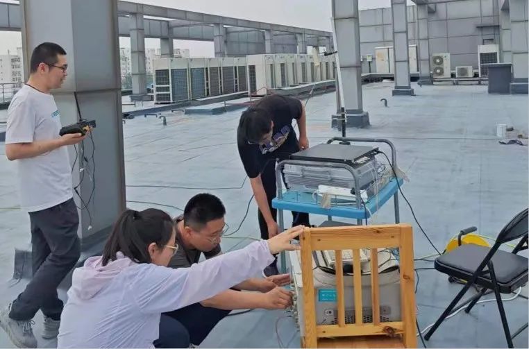 坐標(biāo)58號(hào)樓樓頂,北京這些日子時(shí)而艷陽(yáng)高照,時(shí)而潮濕悶熱,樓頂上更是熱氣騰騰,設(shè)備摸上去都燙手。但為了保障項(xiàng)目產(chǎn)品順利交付,5G通信導(dǎo)航事業(yè)部的技術(shù)人員正抓緊進(jìn)行著產(chǎn)品測(cè)試工作,他們幾乎每天在樓頂上一呆就是幾個(gè)小時(shí),任憑身上的衣服濕了又干,干了又濕,沒(méi)有一絲退縮。
