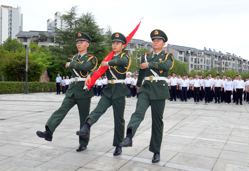 上午8時(shí),伴隨著雄壯激昂的國(guó)歌以及航天科工之歌,五星紅旗和集團(tuán)公司司旗先后冉冉升起。辦公樓前排成整齊隊(duì)伍的干部職工精神飽滿(mǎn),肅然而立,面對(duì)國(guó)旗行注目禮。