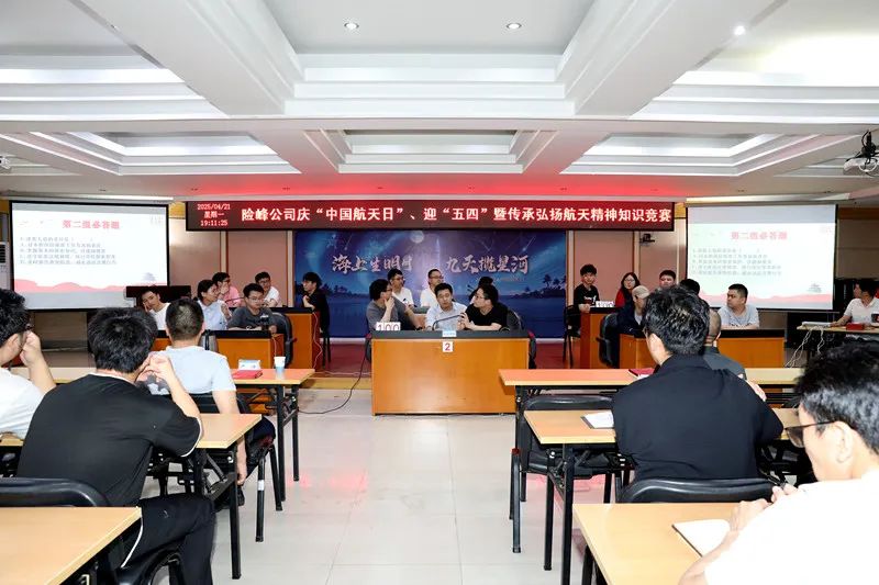 “航天四老是誰?中國航天日為何定在4月24日?載人航天精神的內涵是什么?......”4月21日晚,險峰公司會議室里問答聲此起彼伏,掌聲、歡呼聲不絕于耳。一場別開生面的航天精神知識競賽火熱進行中,來自公司10個團支部的青年代表、中層及以上領導干部近100人將會議室擠得滿滿當當。