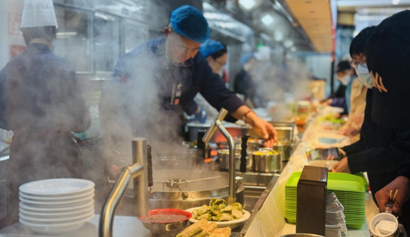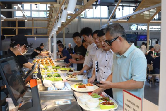 在運營方面,食堂深度融合數字化技術,實現了武漢、孝感兩地“一卡通”消費,職工還可通過微信點餐,并選擇掃碼支付或刷臉支付,可有效縮短排隊等待時間。菜品與服務上,食堂力求從“吃飽”向“吃好”升級,每周更新菜單,開設自助餐、十元親民檔口、輕食減脂餐等,滿足多樣化飲食需求;延長服務時間至晚上八點半,適配不同時段就餐需求;同時檔口實行“明廚亮灶”,嚴守食品安全底線,讓職工吃得放心。