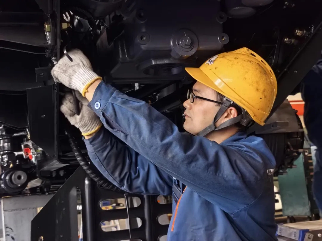 清晨,在三瓦公司生產(chǎn)現(xiàn)場,裝配工正在開展特車底盤質(zhì)量檢查,他仔細(xì)對螺栓扭矩、管路線束、液體加注等關(guān)鍵環(huán)節(jié)逐一核查,不放過任何一處潛在質(zhì)量隱患,嚴(yán)守質(zhì)量關(guān)口,全力保障底盤質(zhì)量過硬。(圖文/楊毅)