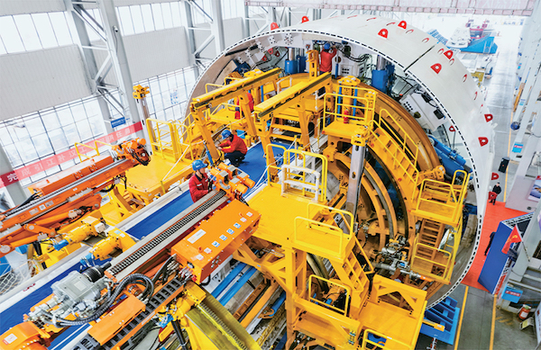 2024年11月22日,由鐵建重工、水電六局聯合打造的“江漢新石器號”隧道掘進機在長沙下線,這是迄今中國最大直徑敞開式巖石隧道掘進機。圖為當日,在鐵建重工長沙第一產業園,工人在調試“江漢新石器號”隧道掘進機。 新華社記者 陳思汗/攝?