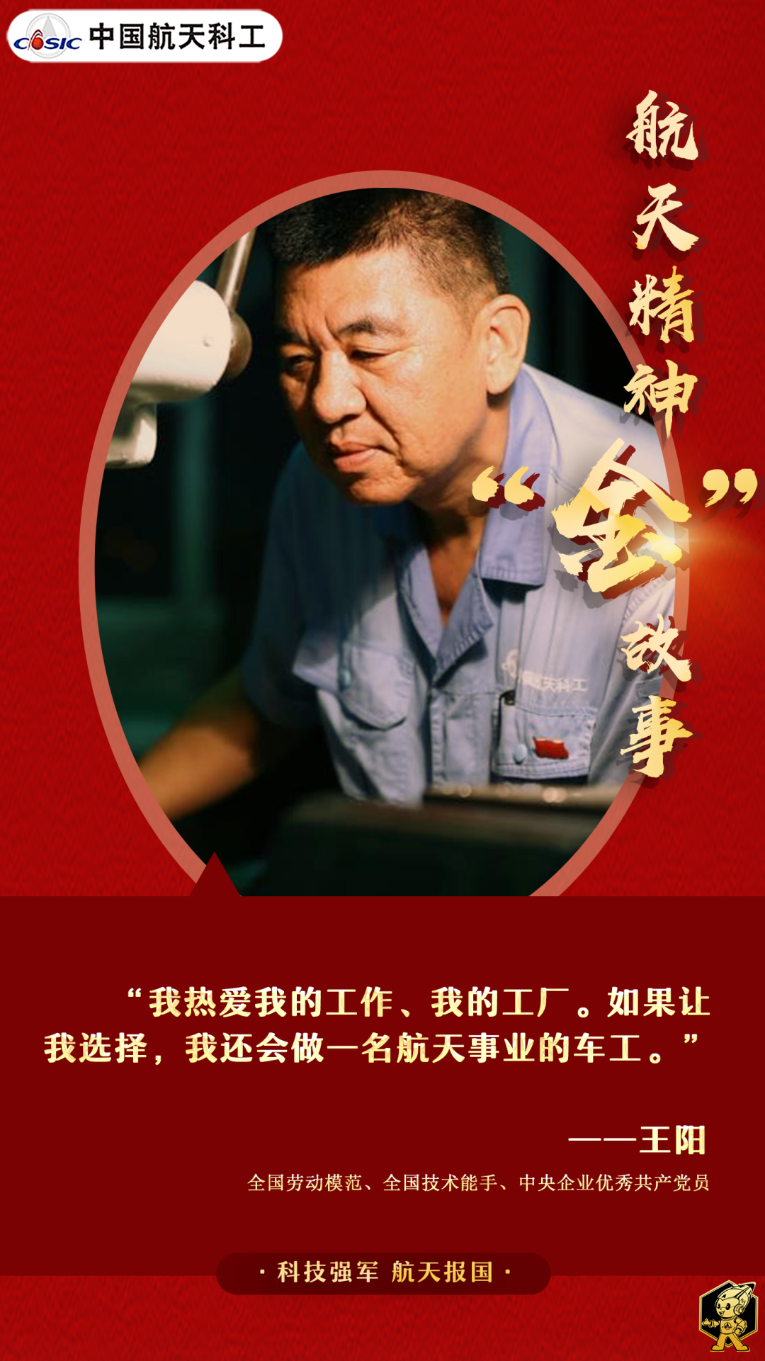 對(duì)事業(yè)熱愛(ài)篤定,對(duì)專(zhuān)業(yè)執(zhí)著堅(jiān)持,三尺車(chē)臺(tái),王陽(yáng)一站就是40年。他用“零失誤”的操作創(chuàng)造了連續(xù)28年無(wú)廢品紀(jì)錄,他用100%的產(chǎn)品合格率保障了載人航天等重大工程任務(wù)的成功。因?yàn)檫@股倔勁韌勁,王陽(yáng)把“鐵疙瘩”車(chē)成了航天精品,也把自己“車(chē)”成了國(guó)之棟梁。
