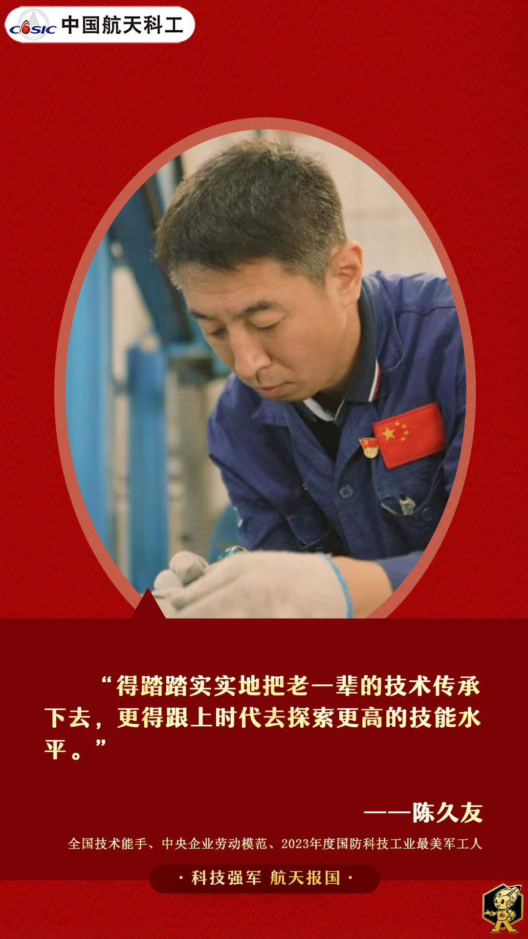 進入智能化時代,陳久友深度參與智能焊接設備開發研制,鍥而不舍鉆研自學機器人工作原理,并與設備廠家溝通、開展大量實驗,建立起了一套適用于國產激光器的焊接參數,攻克了復雜結構焊接路徑規劃難題。如今該設備已廣泛用于飛行器復雜構件的焊接,焊接效率提高近百倍。(海報/婕 文/辛笑穎)