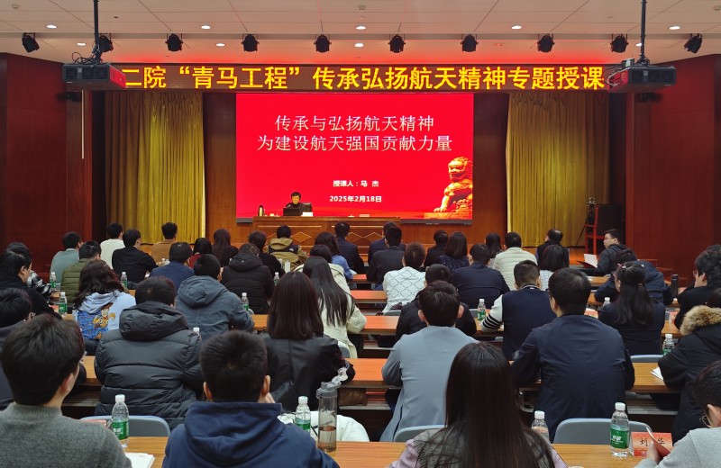 馬杰以錢學森、鄧稼先、任新民、黃緯祿等老一輩航天前輩奉獻擔當的事跡為例,生動闡述了中國航天事業在艱難中前行、在人類攀登科技高峰征程中不斷刷新中國高度的偉大歷程。她指出,航天精神是中國航天人自身的特質、有獨特的精神稟賦,具有非常重要的傳承價值。航天精神是航天人的意志和品格的集體表達,是支撐航天事業不斷發展、續寫九天攬月壯舉的巨大動力。馬杰勉勵二院青年,要傳承弘揚航天精神,將其融入進血液、落實到行動,勇敢扛起“科技強軍、航天報國”的神圣使命。
