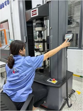 位于701庫的性能組實驗室里燈火通明,試驗機與洛氏硬度計發出持續不斷的規律蜂鳴。性能組組長黃姐和組員小王被堆積如山的待檢樣品包圍。每一份樣品都需經受嚴格考驗:電子萬能試驗機上,金屬樣條被緩緩拉長直至斷裂,電腦屏幕實時繪制著反應材料強度的拉伸曲線;洛氏硬度計旁,檢測員凝神屏息,在無數樣品表面精準施壓,記錄著一個個硬度數據點。連續數小時高強度操作,手臂早已酸痛難當,目光卻依舊如炬,牢牢鎖定每一個讀數、每一個數據點。