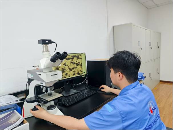 在相對安靜的金相制備與分析室內,則是另一番“于無聲處聽驚雷”的景象。金相組員小天正在顯微鏡下經歷著一場更為精細的“尋微”之戰。經過嚴謹打磨、拋光、腐蝕的樣品被逐一置于高倍顯微鏡下。小天伏在目鏡上,全神貫注,仿佛要將整個身心都融入材料微觀世界。他緩慢而精準地旋動調焦旋鈕,目光如最精密的探針,在馬氏體的森林與奧氏體的沙漠間反復巡弋,不放過任何一絲組織異常的蛛絲馬跡。寂靜中,唯有儀器細微的運轉聲與客戶間偶爾壓低交流的聲音。突然,他目光一凝,在數十件試樣中又鎖定了一件組織異常試樣,果斷標記,
